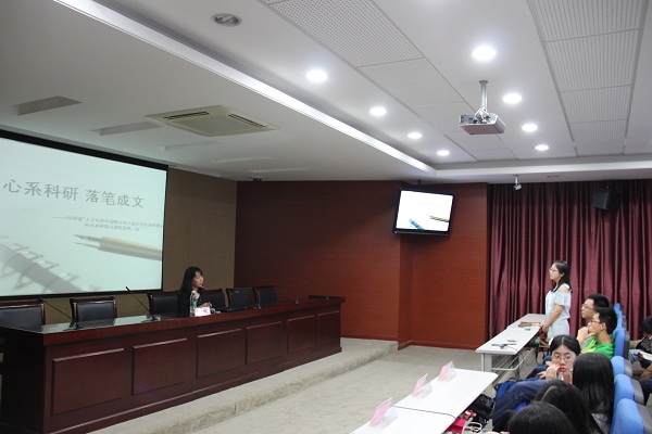 首先,要对已发表过的文章进行有效地总结。在对已发表文章进行选择时,需要注意文章的质量,分别从“理论性”和“应用性”两方面进行合理选择,最后借鉴已发表文章的理论依据对自己的论文进行合理有效的背景撰写。同理,论文写作的第二步可以参考已完成的课题报告模式。在这一环节,朱妍老师还向同学们介绍了一篇优秀毕业论文的写作思路,并引导同学们进行思路整理。最后,她展示了课题结项申请的正确填写流程,使同学们受益匪浅。