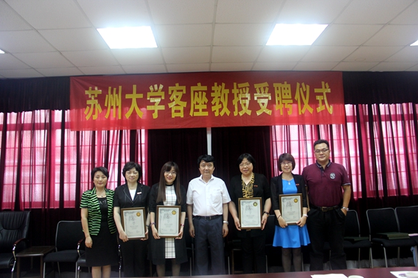 王卓君书记致辞欢迎各位教授的到来,为他们对苏大护理学院的教学科研支持、关注表示感谢。随后王书记为5位专家颁发客座教授聘书。