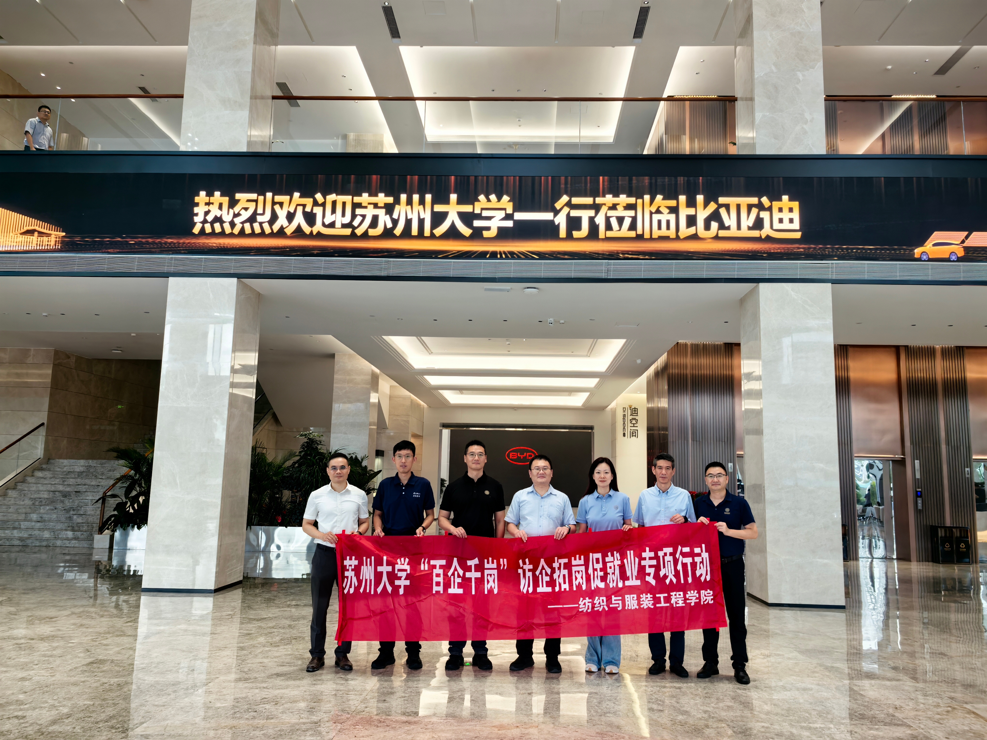 6月28日,我校纺织与服装工程学院联合国内合作发展处、招生就业处赴深圳全棉时代科技有限公司、比亚迪股份有限公司开展访企拓岗行动,并走访深圳校友会,搭建“校—企—友”协同育人平台,为毕业生高质量就业拓宽路径。国内合作发展处处长、校友总会秘书长程晓军、副处长刘子静,纺织与服装工程学院党委副书记、副院长甄勇、学工办主任季彦斐,校招生就业处张维延等参加活动。