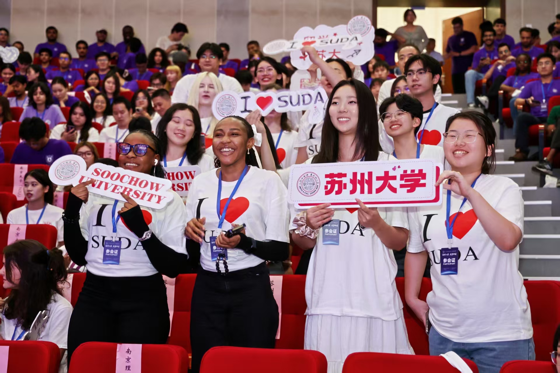 来自我校文学院的伊朗籍留学生张爱岚以中英双语主持人的身份亮相。我校留学生代表方阵在现场齐声喊出校训,传递出苏大人特有的文化底气,成为整场活动中一道亮丽而独特的风景。