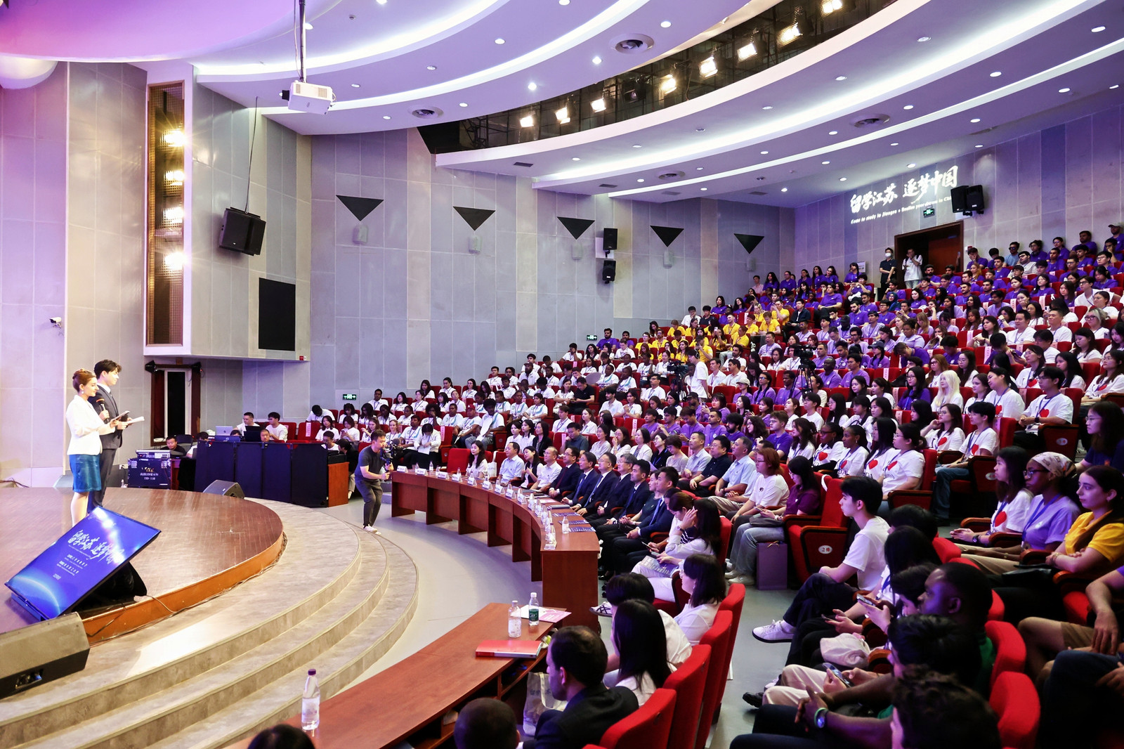 《茉莉花》的旋律响起,为这场开学盛典画上圆满句号。现场的留学生们也情不自禁地轻声跟唱。“这首歌我们课前学过,但今天再次听到感觉格外亲切。”来自老挝的新生李琳说,“就像我们正在慢慢融入这片土地,成为江南文化的一部分。”