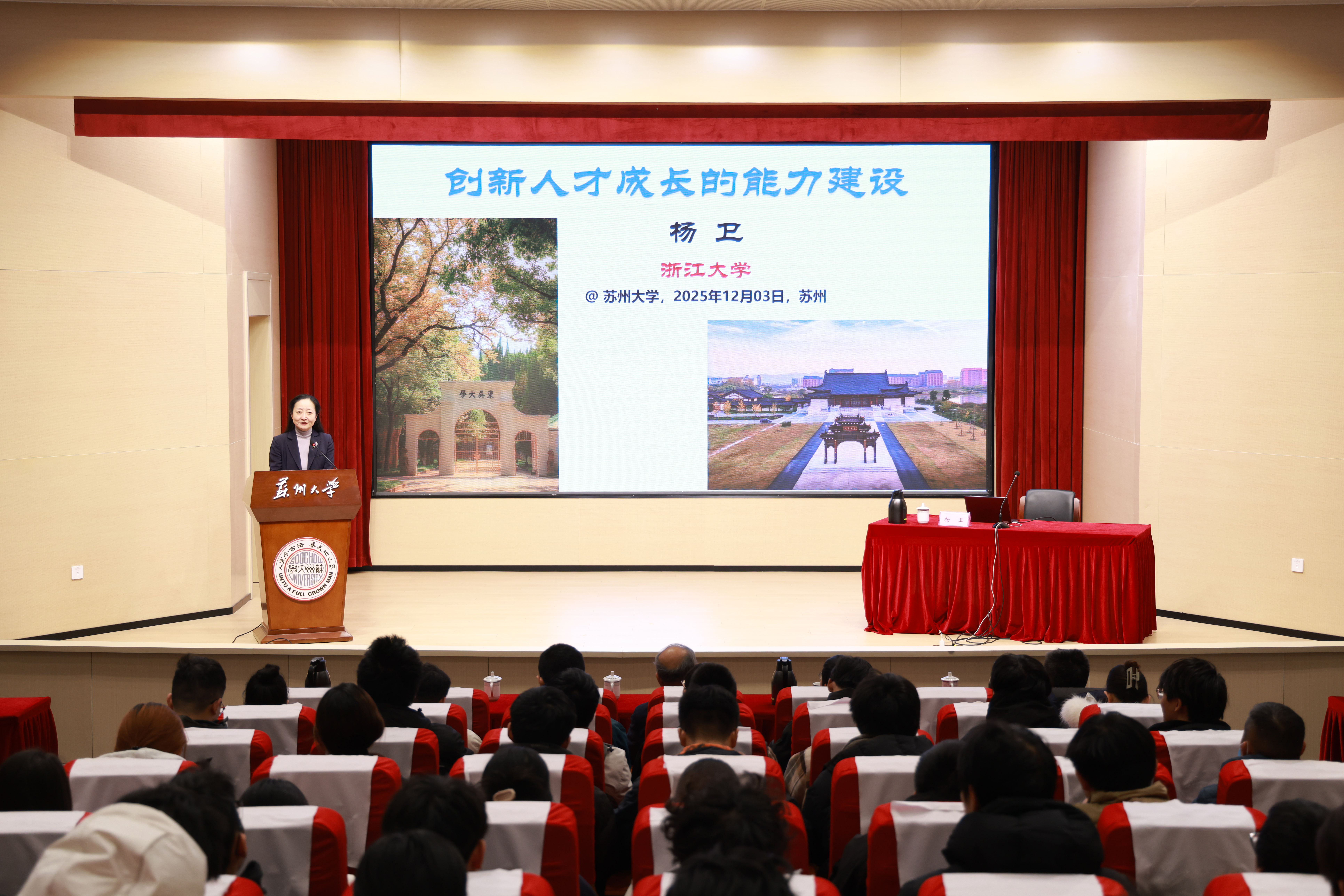 12月3日下午,第20期“东吴大师讲坛”在我校举行。中国科学院院士、国家自然科学基金委员会原主任、浙江大学教授杨卫应邀带来题为《创新人才成长的生态与能力建设》的报告,我校200余名师生聆听讲座。讲座由副校长吴嘉炜主持。