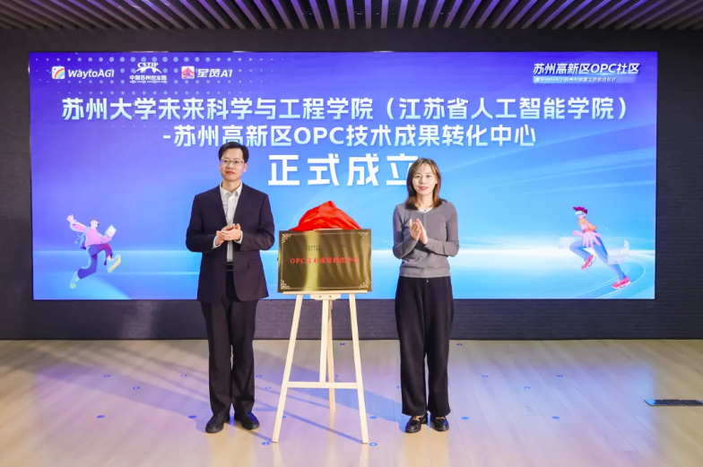 12月2日,苏州大学未来科学与工程学院(江苏省人工智能学院)—苏州高新区OPC技术成果转化中心正式成立。中心将以“人工智能+产业赋能”为核心导向,紧扣国家战略重点方向,依托双方创新要素资源优势,构建“高校源头创新—园区场景验证—产业规模落地”的全链条转化体系,助力OPC群体成长为人工智能产业创新的重要生力军。同时,学院积极整合中关村超互联联盟、WaytoAGI等跨域平台、AI开源社区及OPC创新企业资源,将产业前沿需求、市场真实场景全面融入大学课堂,推动“单人+AI即公司”的创新理念落地生根。