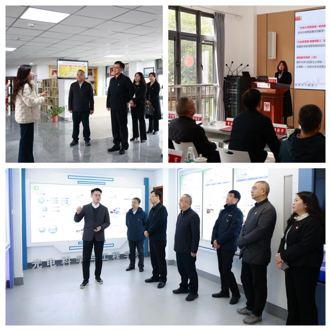 在“一站式”学生社区——养正社区党建阵地,我校马克思主义学院党委副书记、副院长蒋慧介绍了党建品牌建设思路与举措,省样板党支部书记胡绿叶分享了支部建设的经验和鲜活案例。在光电科学与工程学院科技成果展厅,院长陈煜讲解了学院在学科平台建设、科技成果转化、产学研融合等方面取得的具体成效。