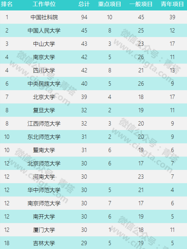 2016年国家社科基金评审结果排行