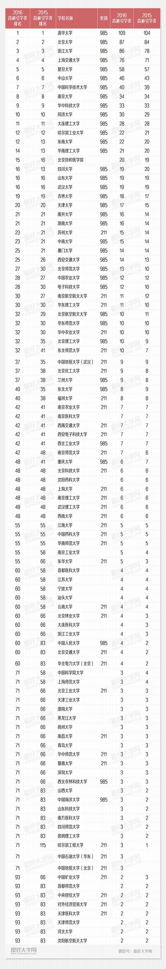 2016年中国高校高被引学者排名